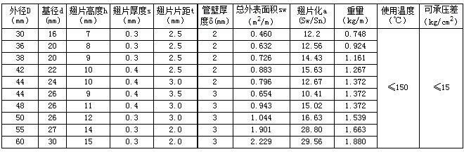 雙金屬復合翅片管參數表
