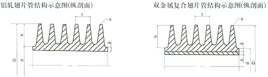 鋁軋翅片管結構示意圖(縱剖面) D翅片管外徑 δ翅片管壁厚 t翅片片距離 s翅片厚度 h翅片高度 |